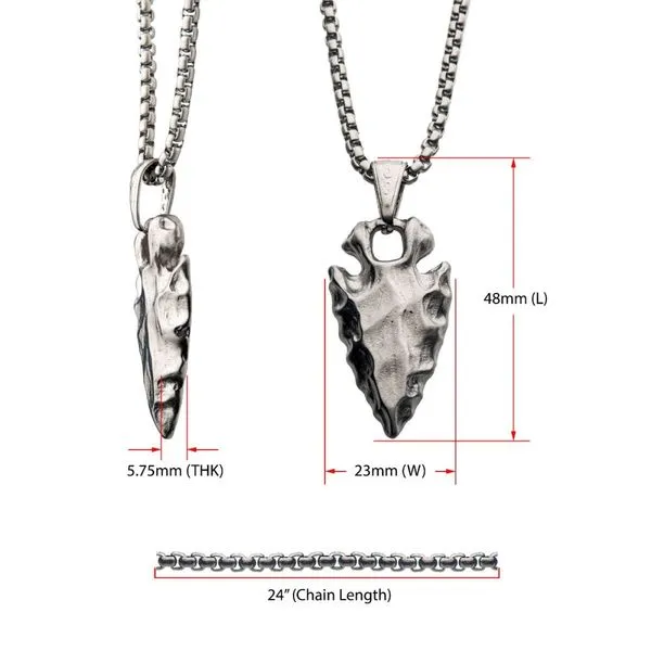 (570) 675-6945Brushed Steel Chiseled Arrowhead Pendant with Box Chain
